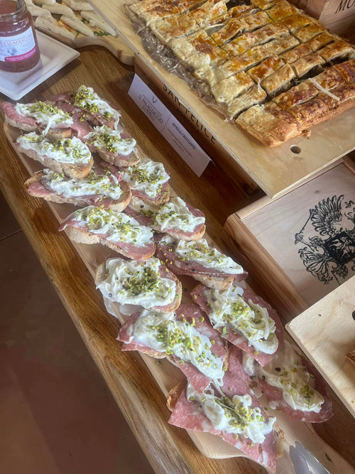 La porchetta abbinata ad una bollicina, il nostro Gran Tartufo, il Live-show-making di Mozzarella col Mastro Casaro, il Brunch della Domenica e per finire la BISTECCA, con le carni dei bovini nati e allevati, direttamente qui in fattoria.